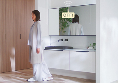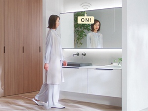 人の動きを感知して化粧鏡の照明が自動で点灯します。
