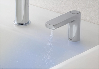 センサーに手をかざすだけで水を出し止めできる。衛生的なタッチレス。